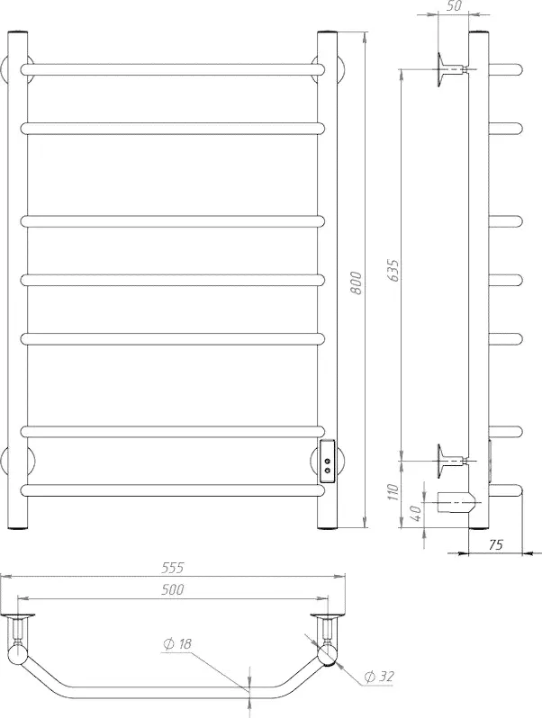 Полотенцесушитель электрический Тругор Браво ПЭК СП3 80x50-2